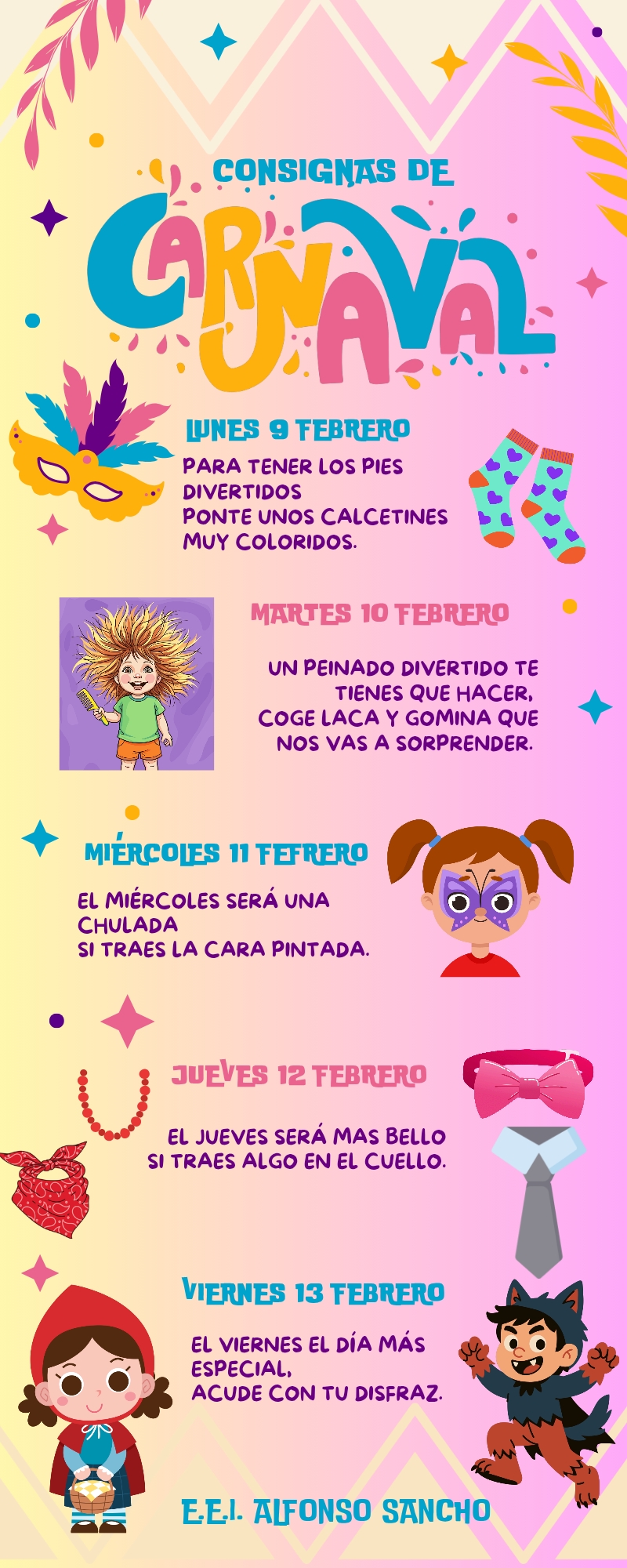 Nota para las familias: Queremos agradecer vuestra colaboración e implicación en la preparación de cada detalle. Gracias por ayudar a que la magia del Carnaval siga viva en el corazón de los más pequeños.